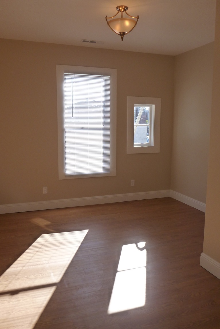 The first bedroom is downstairs. It's a good size and has lots of natural light. Mini-blinds cover all the bedroom windows. |