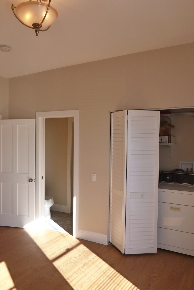 This bedroom also has a closet that contains your own washer/dryer. There's also a stylish half bath (sink and toilet) and access to a large enclosed storage space for your use exclusively. |