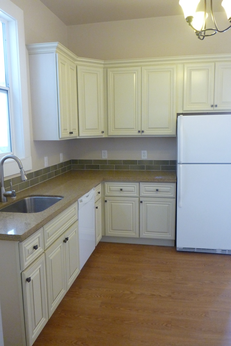 This kitchen is simply wow! Gorgeous new cabinets with soft-close doors, solid surface quartz counter top, Heath tile backsplash, under mount sink with professional faucet, a built-in dishwasher, and gas stove. |