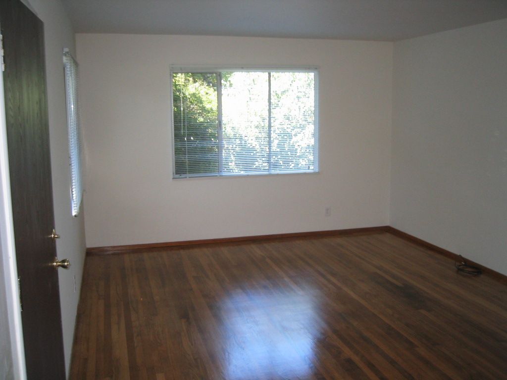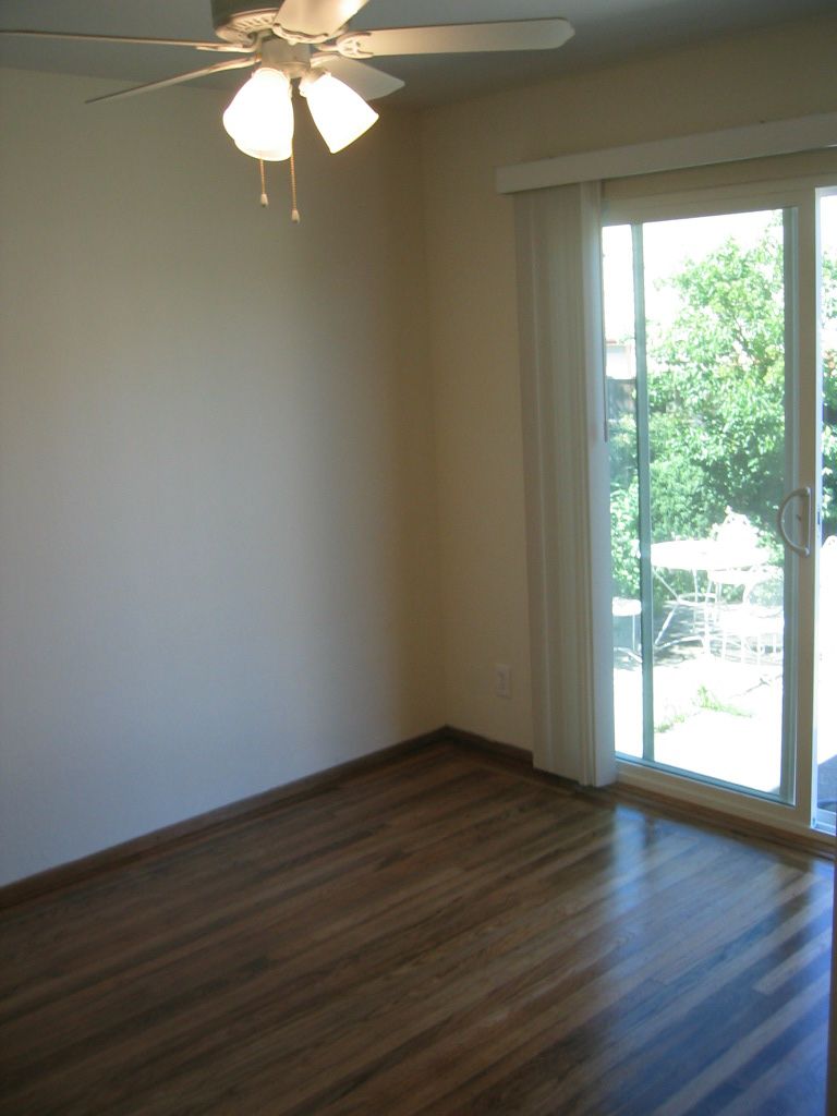 Finally on to the bedroom. The large sliding glass door looks directly out to your own yard and deck. Sunlight streams in onto the hardwood floors and a new ceiling fan is overhead. |