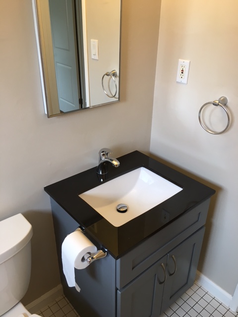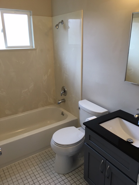 tile floor, bath tub with custom cultured marble surround, and vanity/sink with granite top and a medicine cabinet complete the package. There's even a closet! |