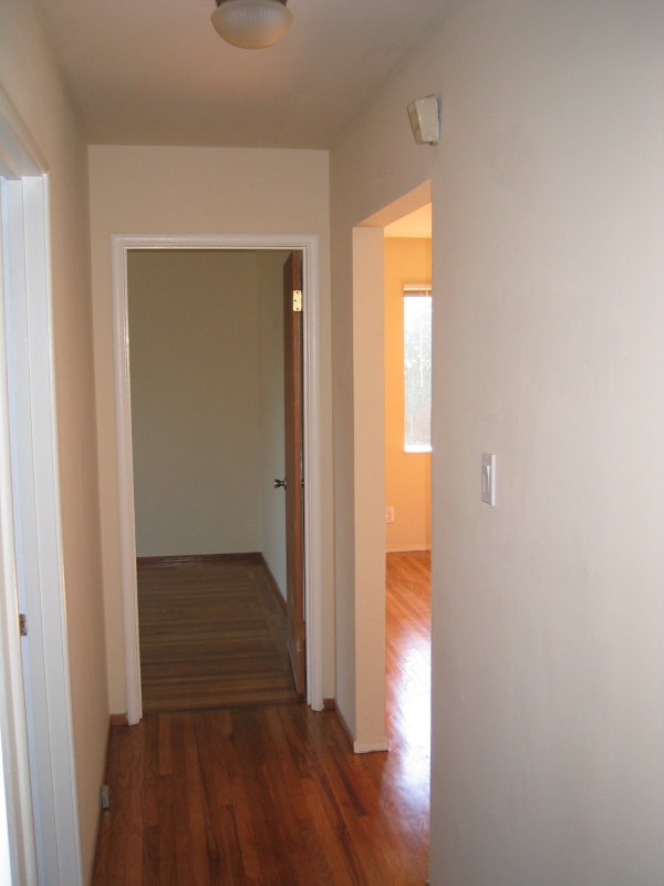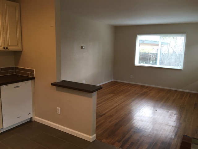 The right-side unit features a two bedroom, one bath layout. There are two entries into the unit-- the front door, and a sliding glass door from one of the bedrooms to the yard. As a nod to energy efficiency, the unit features new double pane windows and all LED lighting. |