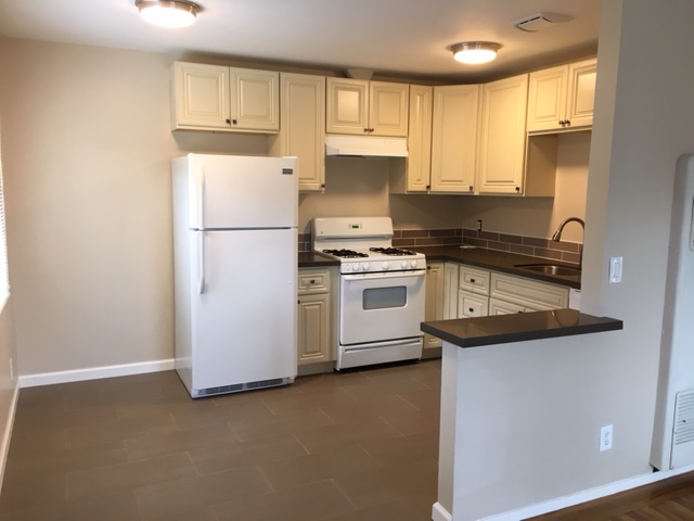 WOW! Take a look at this beautiful brand new kitchen. Completely remodeled with new soft-close cabinets, quartz solid surface countertops, Heath tile backsplash and tile floor. Ammenties include a new refrigerator, gas range with hood, new sink and faucet and a new dishwasher. |
