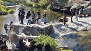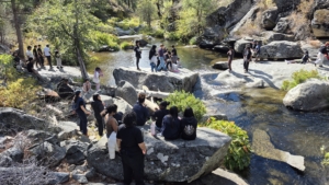 The students were thrilled to get on a bus in Berkeley and get off at Camp Tuolumne! They played volleyball, ping pong, did tye dye and arts/crafts, fishing, hiked to Small Falls and up to the Sugar Pine Trail, and did Nature Service Projects like trail maintenance, plant health, and weeding/pathway restoration.